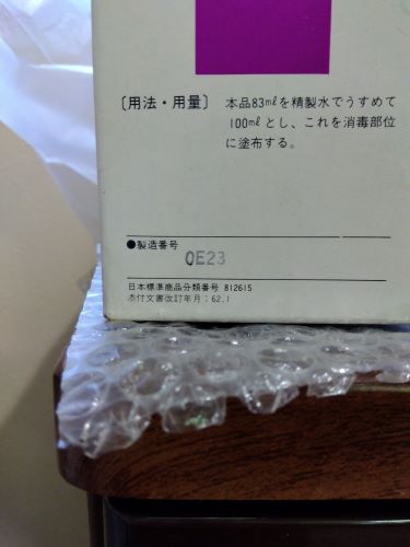 もちろん開封済み。匂いはエタノールだったけれど怖くて掃除にも使えない。