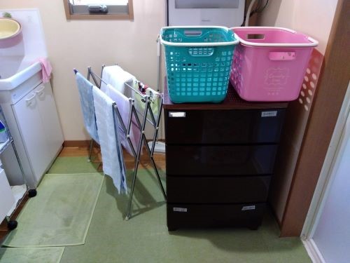 高さがちょうどよく重さがあるものということで、試しにタオル用引き出しを置いてみた。