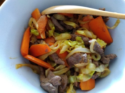 塩コショウした方の肉は野菜と一緒に炒めて、