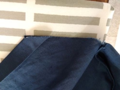 ユザワヤで買った紺の綿麻で作り始めたワンピース。