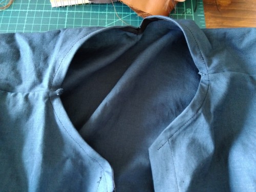 衿ぐりを縫い代1㎝に修正しなきゃ。